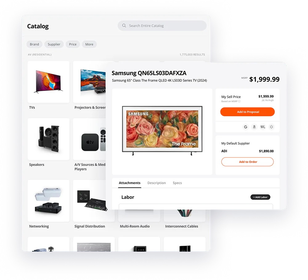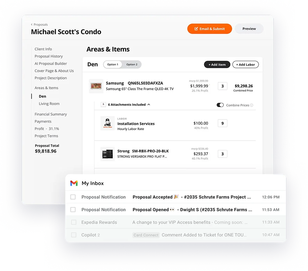 Portal’s proposal tool is so simple you already know how to use it. Industry product data is pre-loaded, so there is nothing to set up.